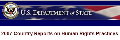 Foi ontem apresentado pelo Departamento de Estado Norte-Americano o Relatório Anual sobre Práticas de Direitos Humanos referente ao ano de 2007. O documento analisa detalhadamente a situação dos direitos humanos em praticamente todos os países do mundo e sob diversas vertentes: desaparecimentos, tortura, tratamento desumano, condições de centros de detenção, detenções arbitrárias, funcionamento dos tribunais, existência de prisioneiros políticos, liberdade de expressão e de imprensa, liberdade de internet, liberdade académica e cultural, liberdade de reunião, liberdade de associação, liberdade de religião, discriminações governamentais e sociais, liberdade de deslocação, protecção a refugiados, eleições e participação política, corrupção e transparência governamental, tráfico de pessoas, direitos das mulheres, direitos das crianças, minorias étnicas e religiosas, trabalho forçado, condições de trabalho, etc