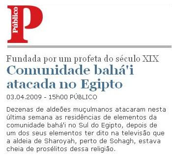 PUBLICO.PT: Comunidade Bahá'í atacada no Egipto